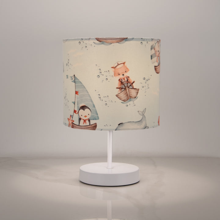 أباجورة استاند مودرن WDD-030 – تصميم فاخر من المعدن المطلي باللون الأبيض مع شابو قطيفة فاكيوم مقاوم للحرارة