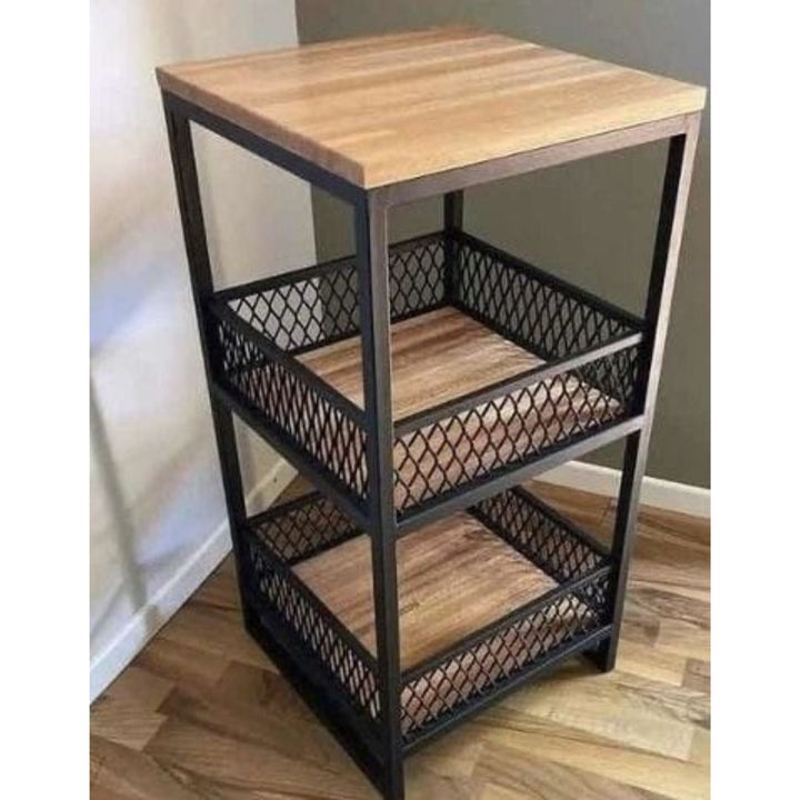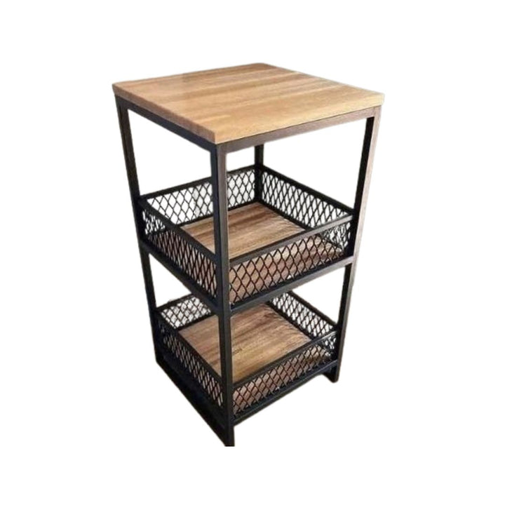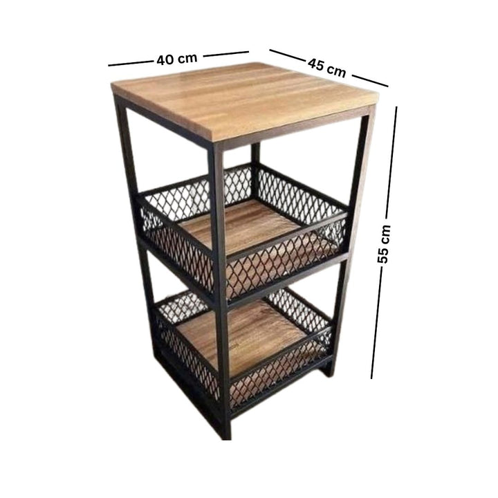 ترابيزة جانبية معدنية بسطح خشبي – تصميم عصري أنيق