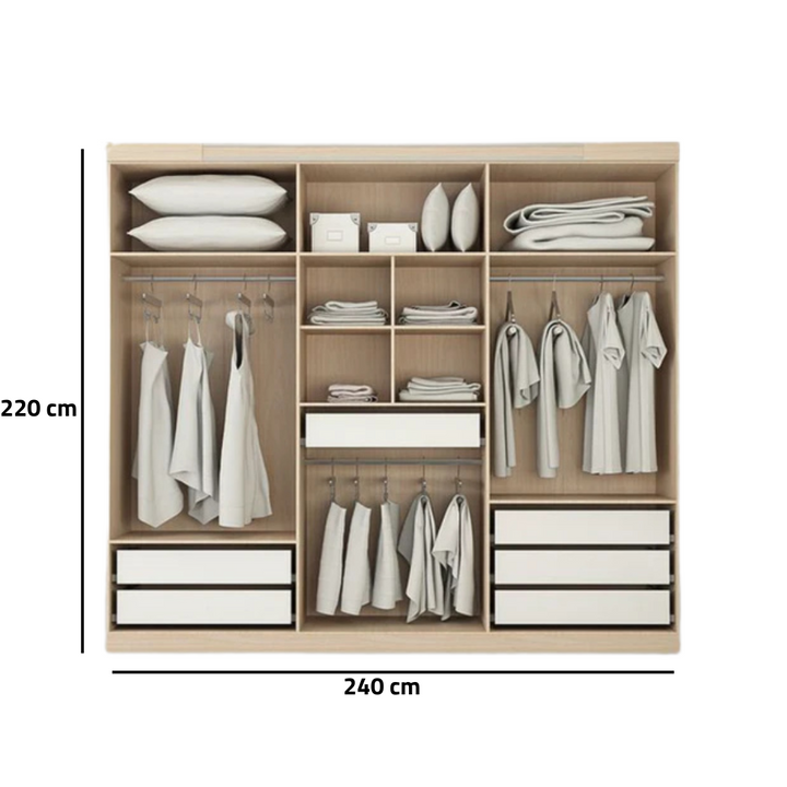 الأبعاد : العرض 240 سم × العمق 50 سم × الارتفاع 220 سم.