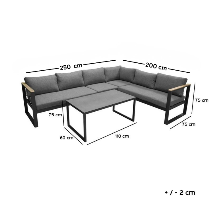 طقم ركنة حديقة 250×200×75 سم – تصميم مودرن متين بألوان أنيقة ومقاوم للعوامل الجوية