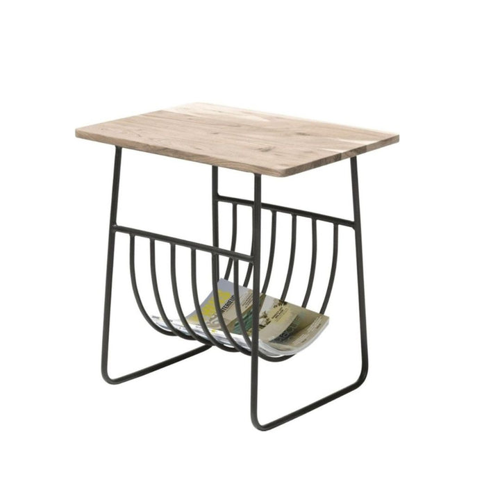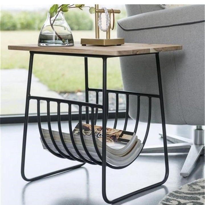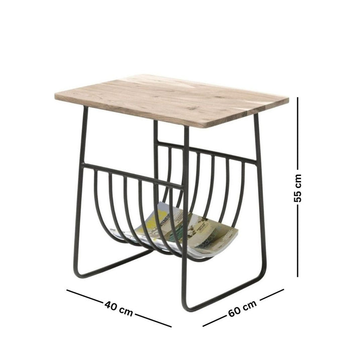 ترابيزة جانبية معدنية بسطح خشبي – تصميم مودرن أنيق