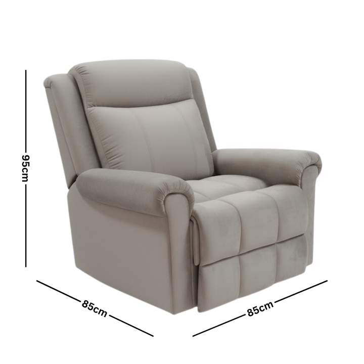 يتميز الكرسي بأبعاد مثالية: ارتفاع 95 سم، عرض 85 سم، عمق خارجي 85 سم، وعمق داخلي 65 سم، مما يجعله مناسبًا لمعظم المساحات المنزلية.