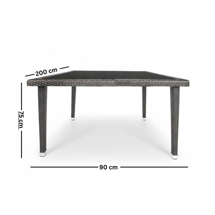 ترابيزة السفرة: العرض 90 سم – الطول 200 سم – الارتفاع 75 سم.