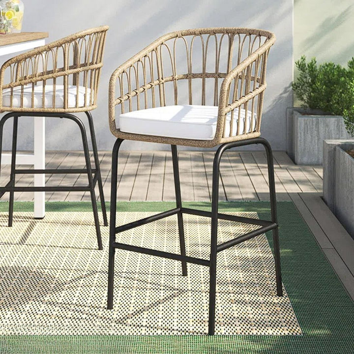 كرسي بار رتان فاخر - هيكل حديد ضد الصدأ - بيج أو حسب الطلب